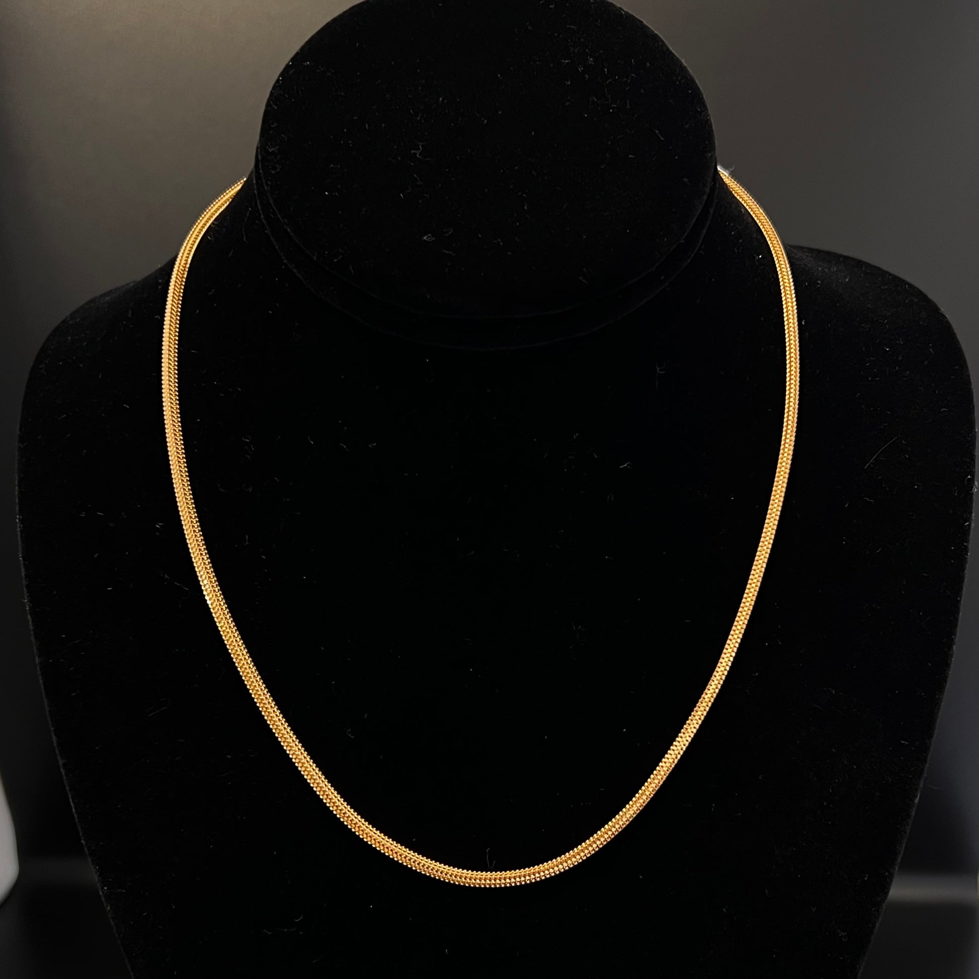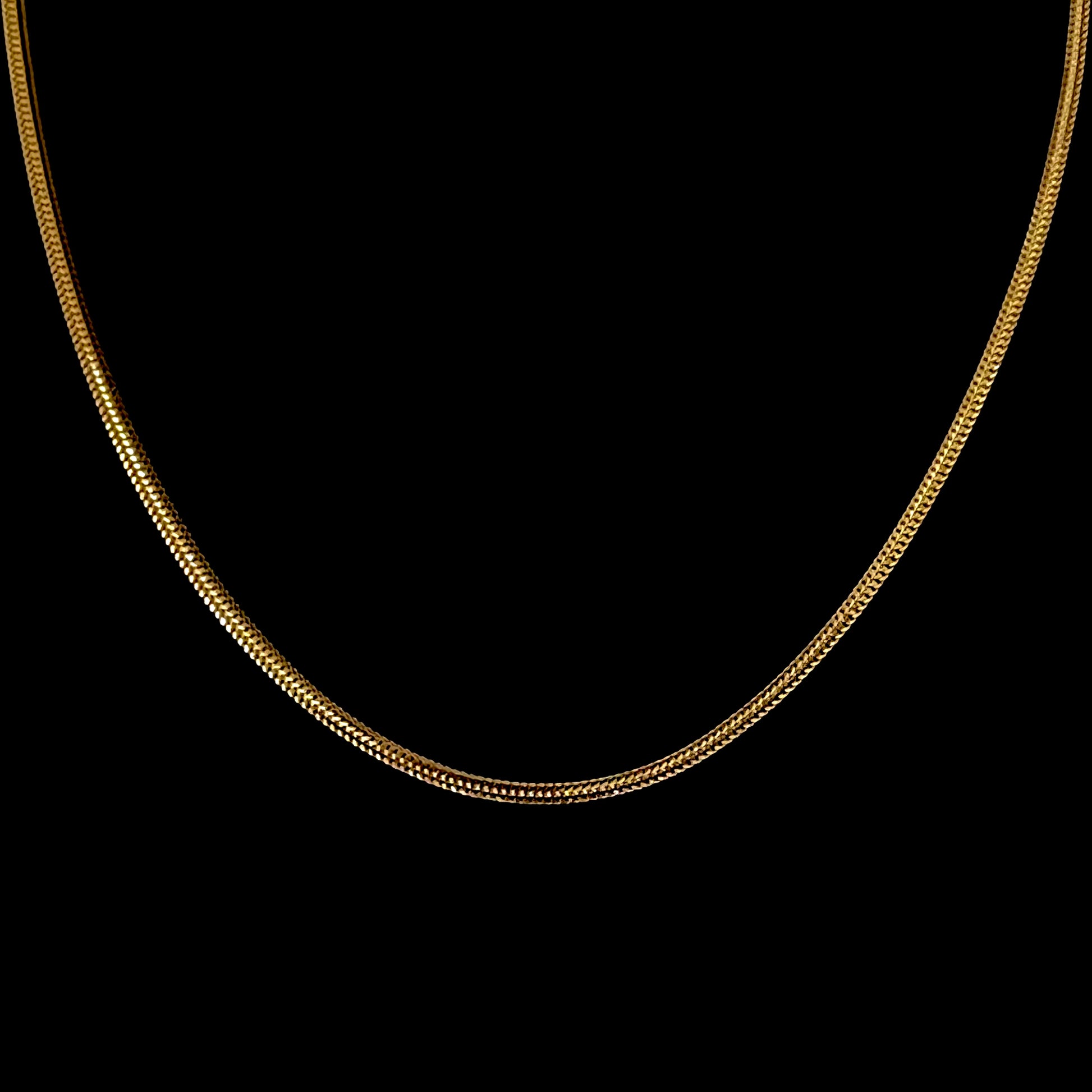 Look amazing in this 22k gold 3 mm slim box chain. Delicately crafted from yellow gold and weighing 16.4 grams, this 16-inch chain will take any outfit to the next level of luxury and refinement! Dare to be dazzling and stand out in the best way!