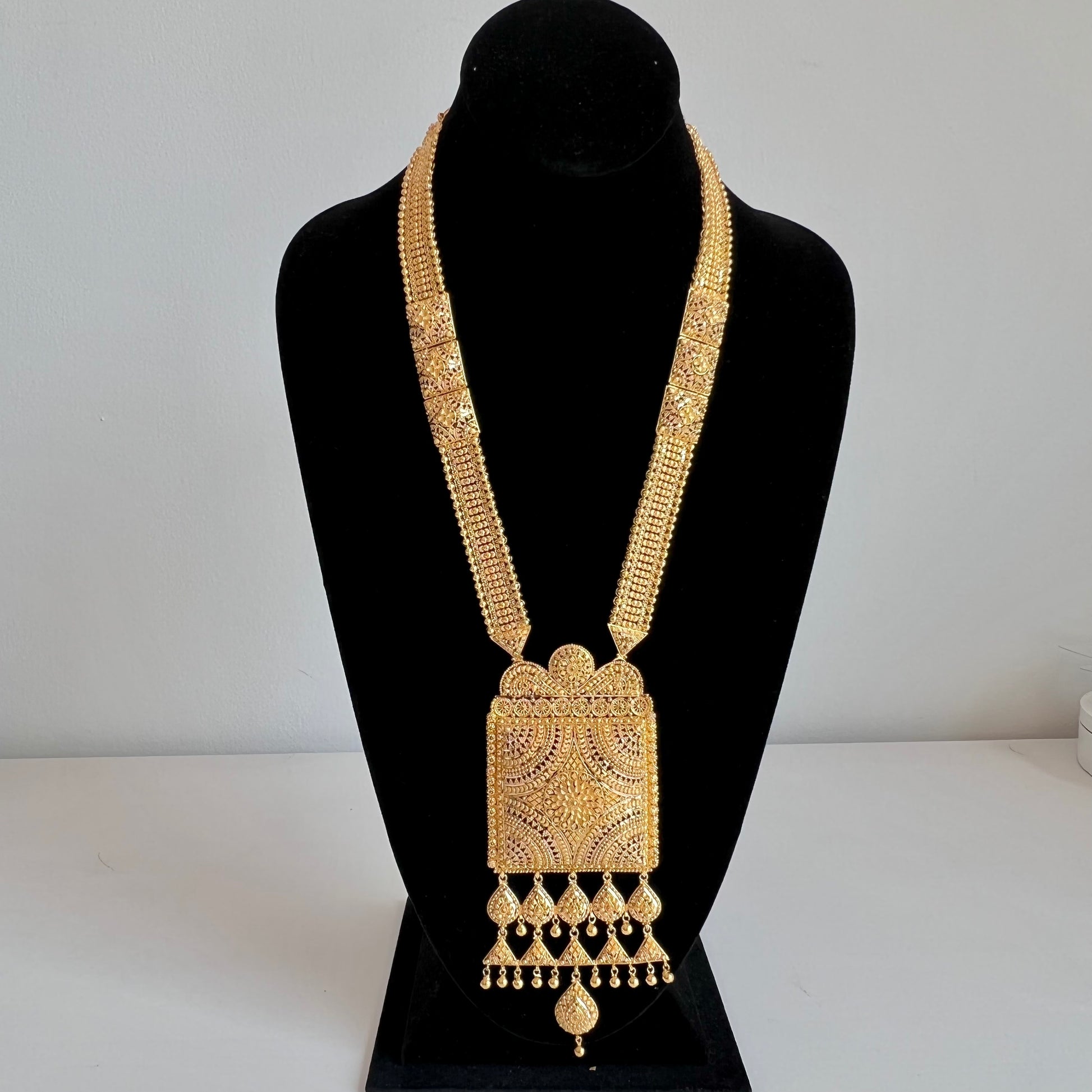 Luxurious Gold Bridal Set with Heavy Square and Ghungroo Pendant