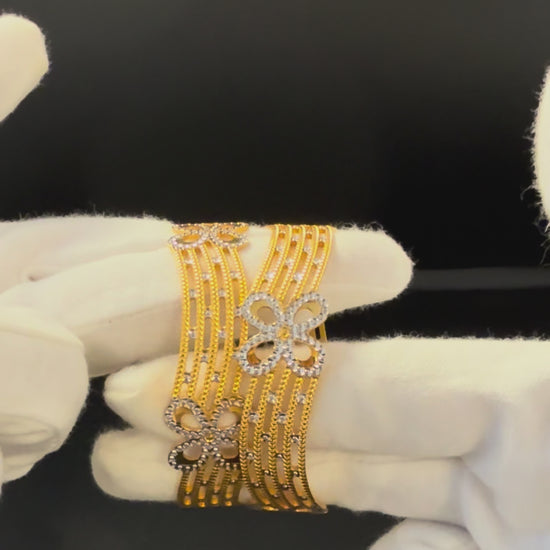 Machine Made Bangles Set with Gold and Rhodium Flower
