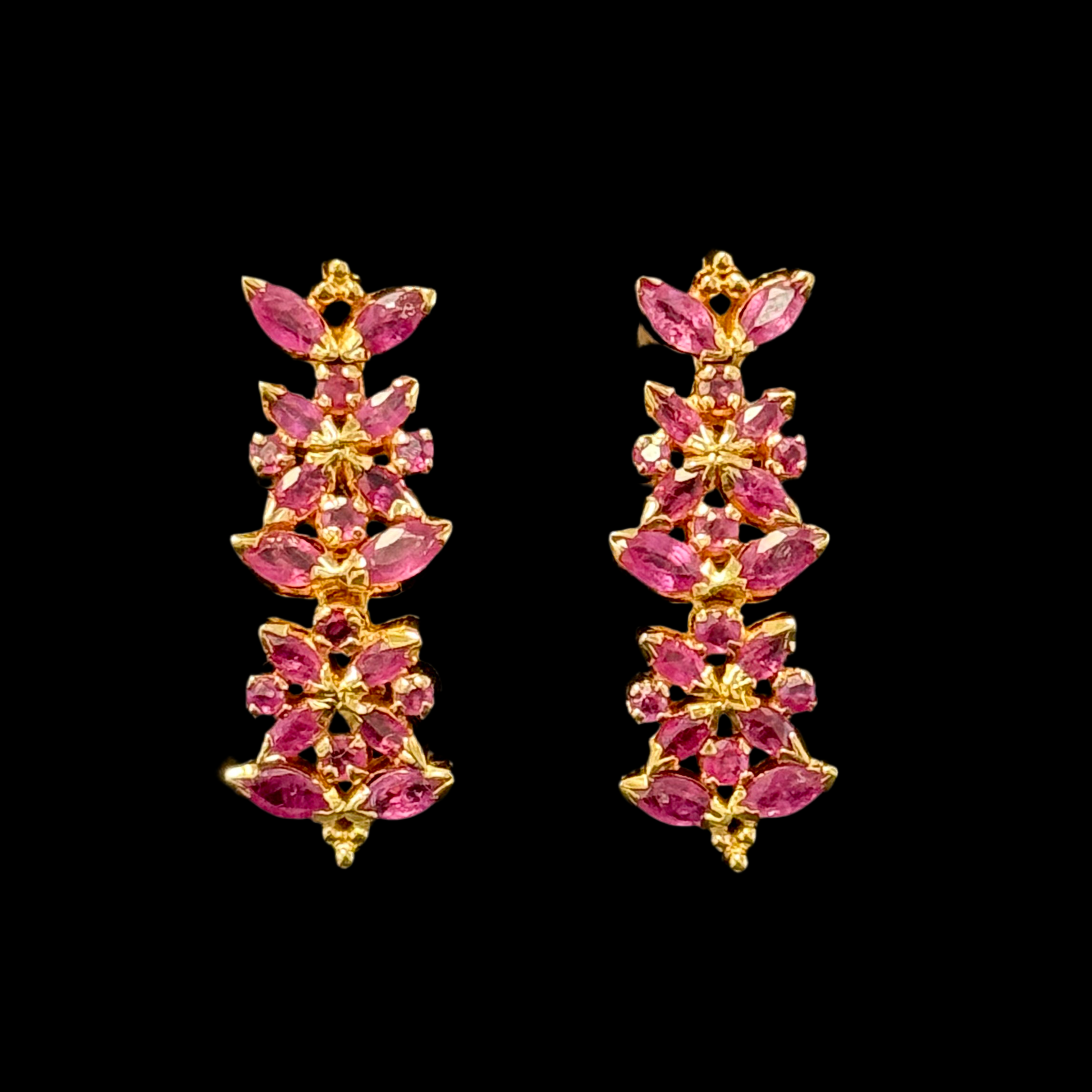 Sparkle and shine with our Radiant Ruby Earrings! These stunning earrings feature beautiful marquise cut emeralds, delicately crafted in 22k gold. The 25 mm length adds a touch of elegance, while the screwback lock provides added security. Elevate any outfit and embody the beauty of natural gemstones with these earrings.