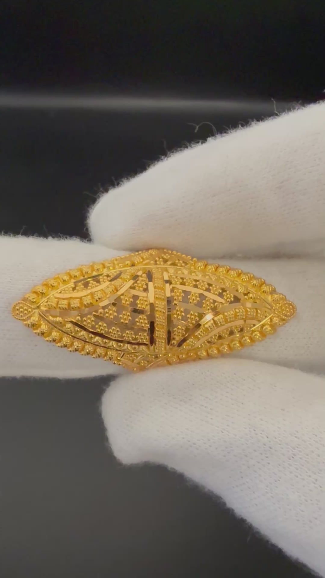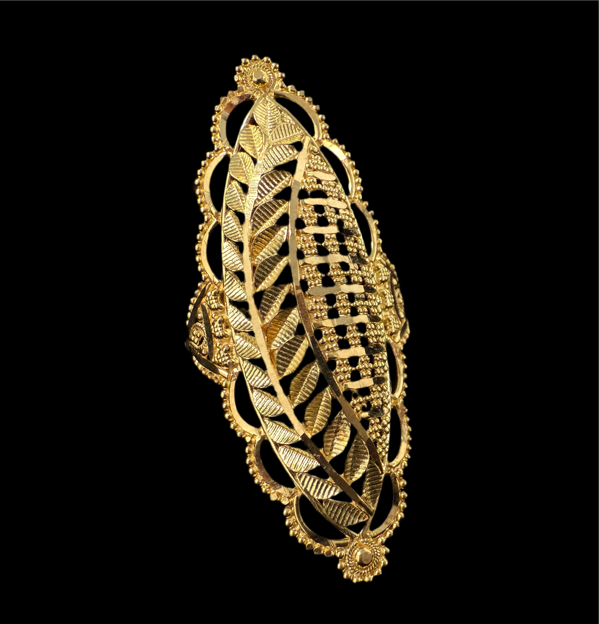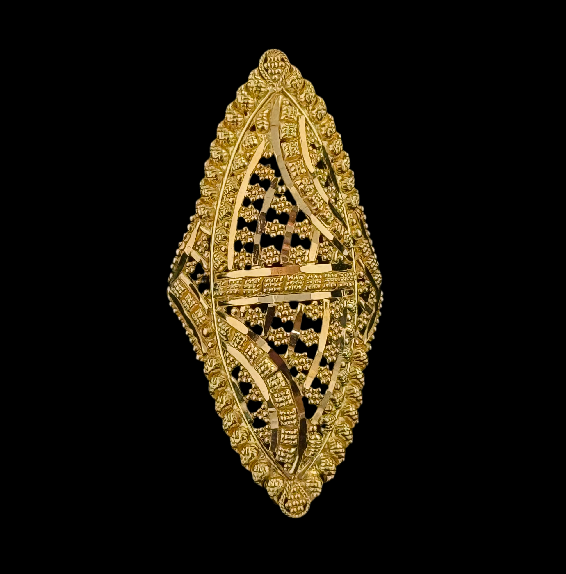 This 22k gold Row Row Row your Golden Boat ring is a stunning masterpiece. The long design is full of intricate details, and its ligh weight ensures a luxurious feel in your hand. Relax into a timeless splendor that will last for a lifetime. You'll LOVE this golden boat!