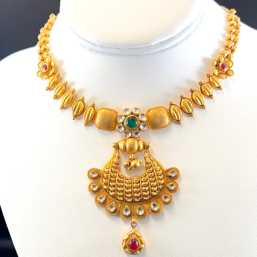 Tribal Antique Gold Necklace Set with Earrings